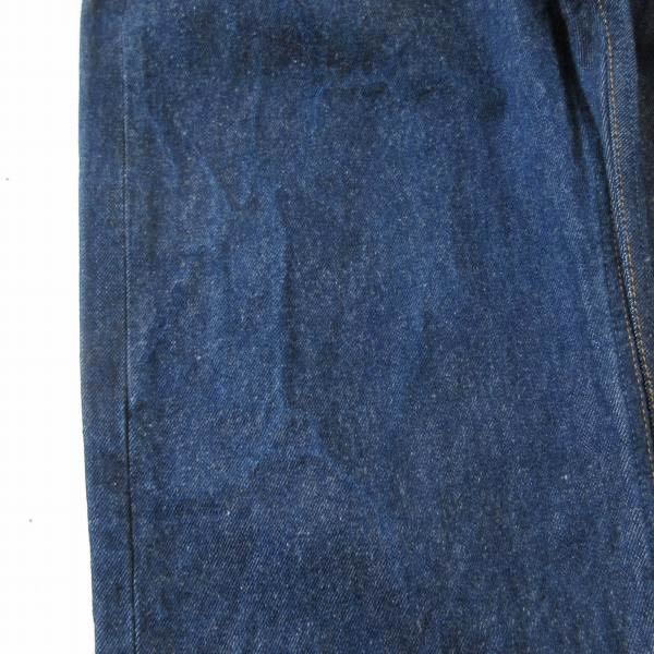 ワンウォッシュ入っている状態で、シワ部分の薄い色落ち、保管時の薄汚れなどがあります。