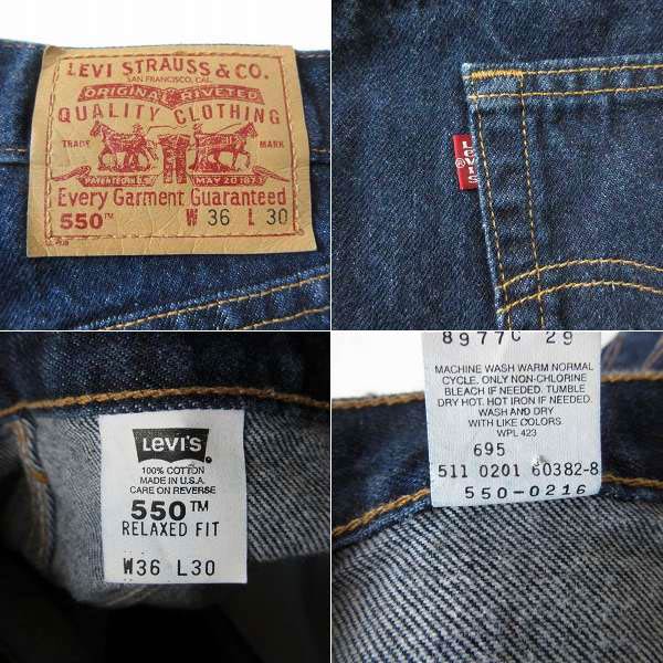 美品 2001年製 USA製 リーバイス 550 濃紺 ジーンズ W36 L30 希少レングス 00s アメリカ製 ビンテージ D153