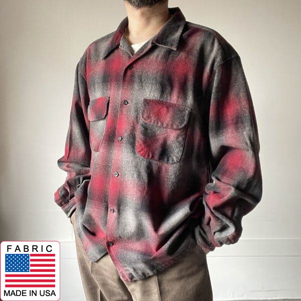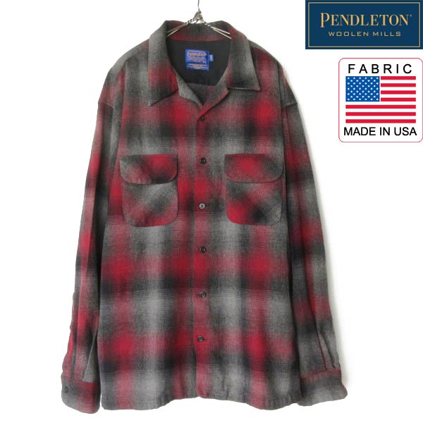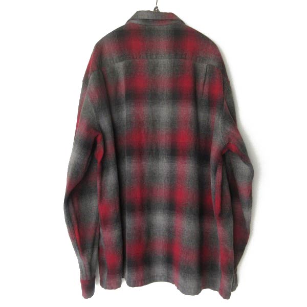 好配色 00s PENDLETON ペンドルトン オンブレ チェック ボード シャツ XXL-LONG 赤黒グレー系 ウール 長袖 大きいサイズ D153
