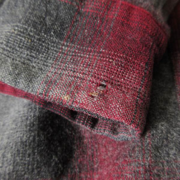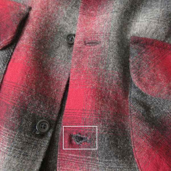 袖先に小穴、下から4つ目のボタンホールにリペアがあります。