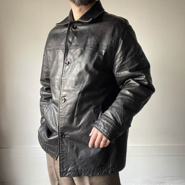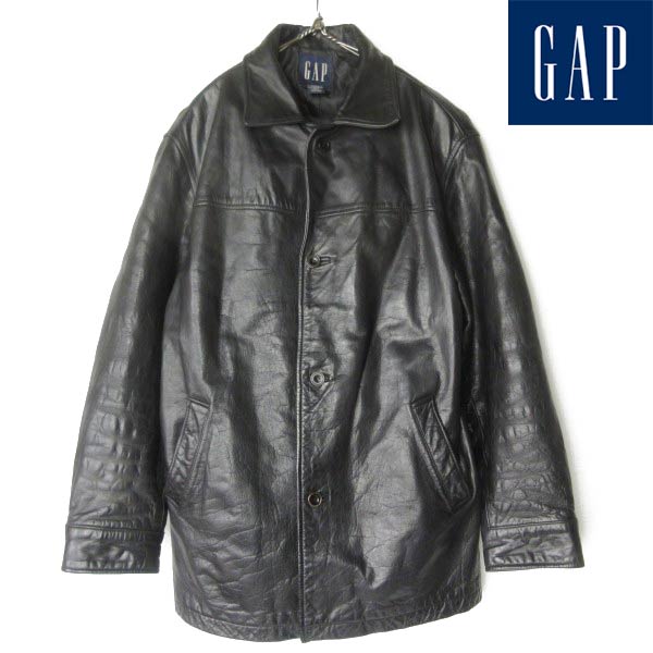 90s GAP オールド ギャップ レザー カーコート 黒 M レザージャケット ブラック Tバック 希少サイズ ビンテージ D153