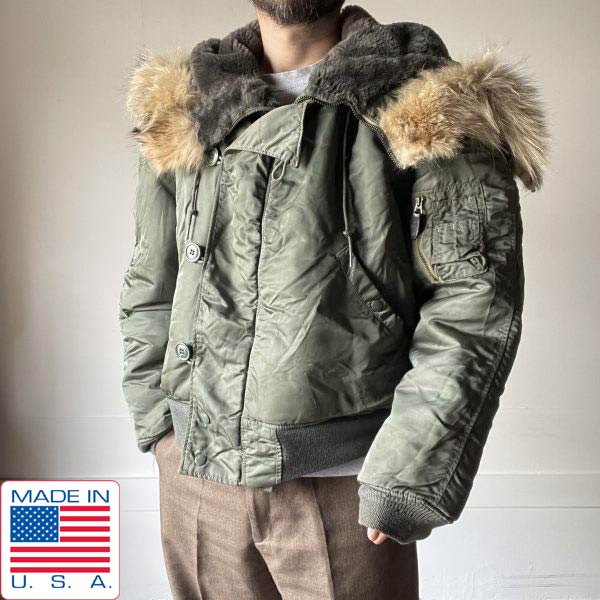 希少サイズ 60s-70s 実物 米軍 N-2B フライトジャケット XXL相当 コヨーテファー USA製 大きいサイズ ビンテージ D153