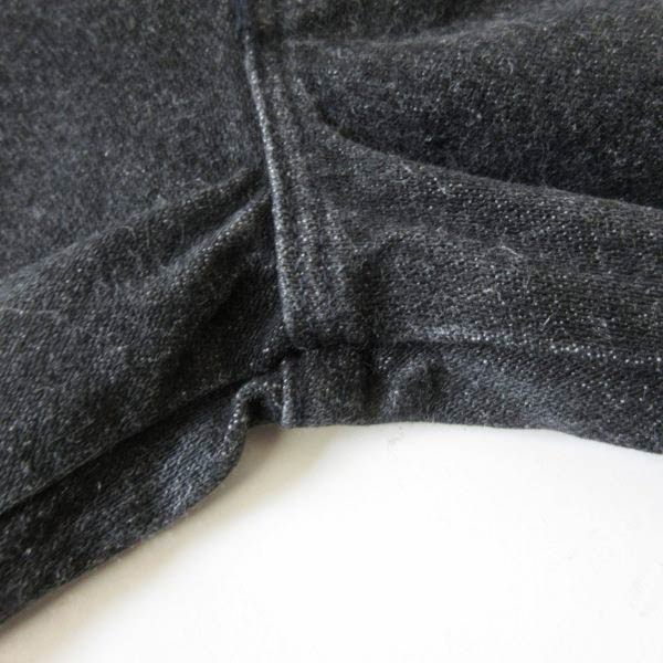 古いジーンズに見られる股下インシームの擦り切れなどはありません。オリジナルレングスです。