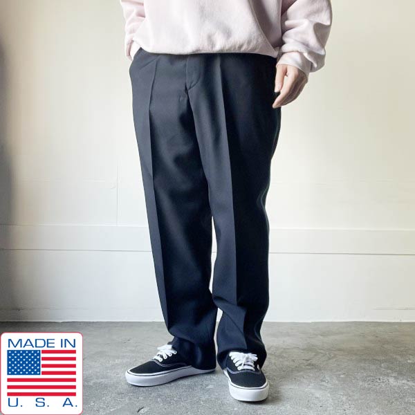 USA製 FLYING CROSS 側章 スラックス 紺系 35R サイド ライン パンツ ワークパンツ ネイビー アメリカ製 D153