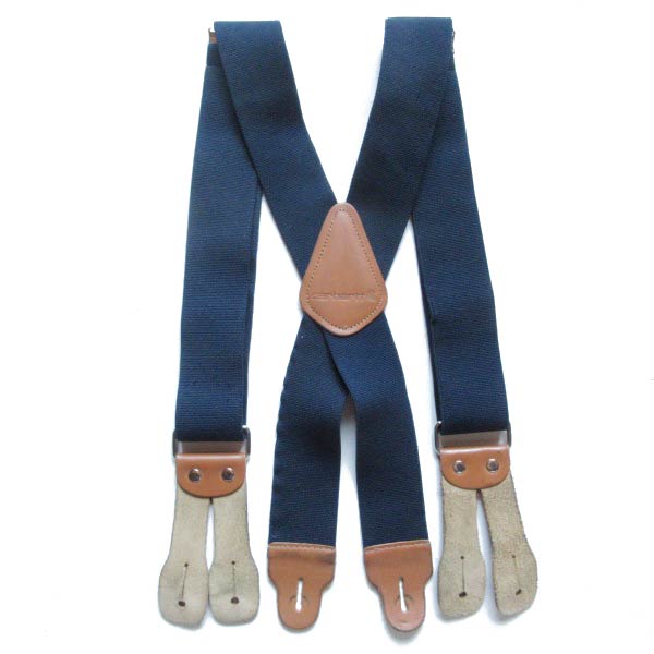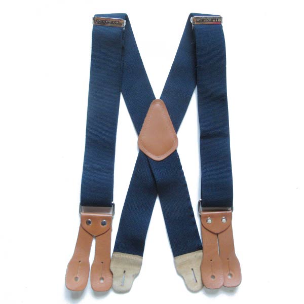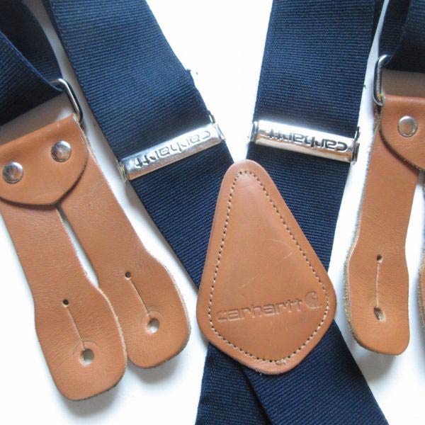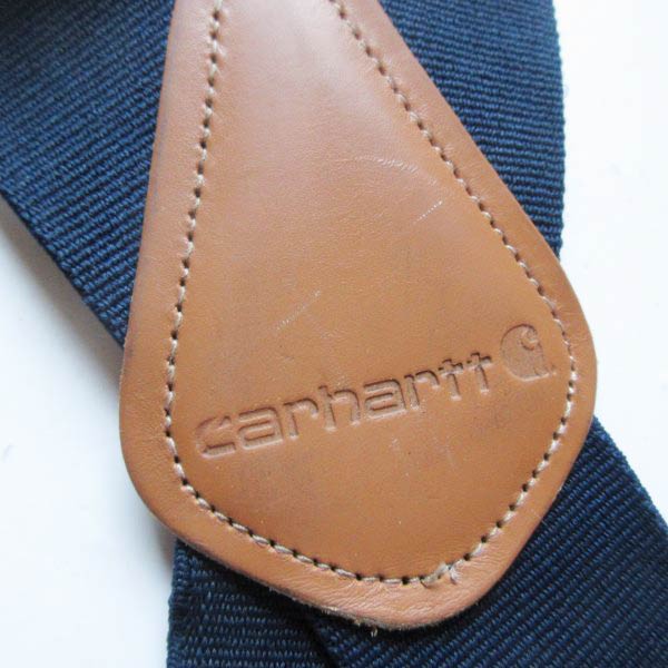 Carhartt カーハート 伸縮素材×レザー X型 ボタンタブ式 ワーク サスペンダー 紺系 Xバック ブレイシーズ D153