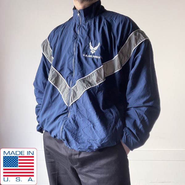 美品 USA製 実物 米軍 USAF PTU フルジップ トレーニング ジャケット 紺系 M-R ウィンドブレーカー アメリカ製 D153
