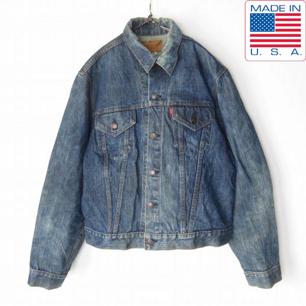 60s-70s USA製 リーバイス 70505 デニム ジャケット 4th 66前期 SIZE 46 縦落ち 大きいサイズ ジージャン ビンテージ D153