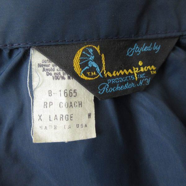 60s-70s USA製 Champion チャンピオン ランタグ ナイロン コーチジャケット 紺系 XL ネイビー ランナーズタグ ビンテージ D153