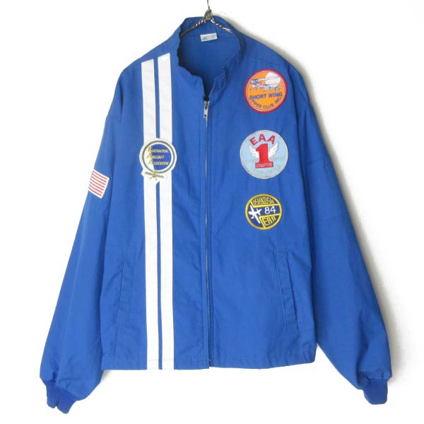 80s USA製 FLIGHT APPAREL パッチ付き レーシング ジャケット XL 青系 ワッペン ショート ブルゾン アメリカ製 ビンテージ D153