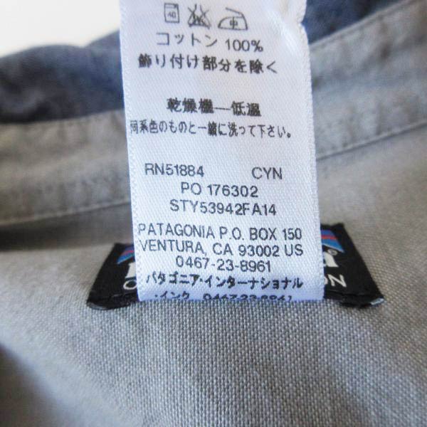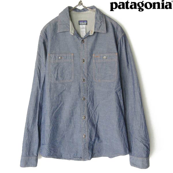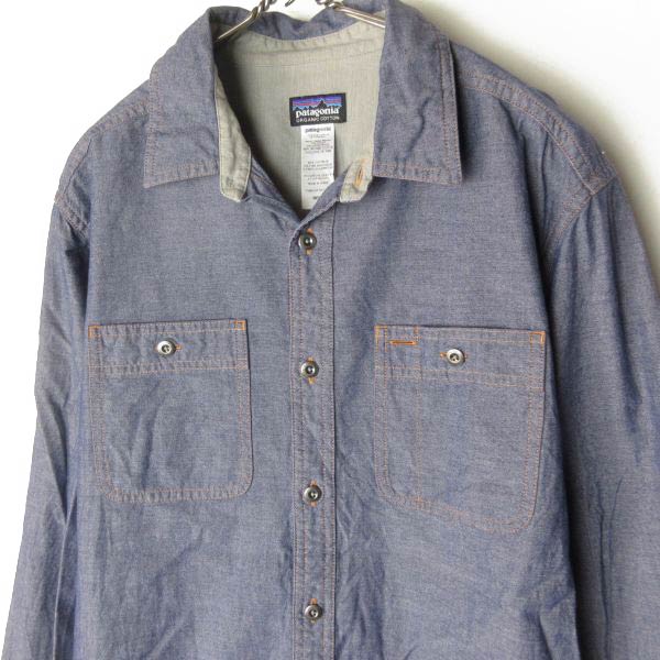 美品 2014年製 patagonia パタゴニア 長袖 シャンブレー シャツ M メタルボタン ワークシャツ D153