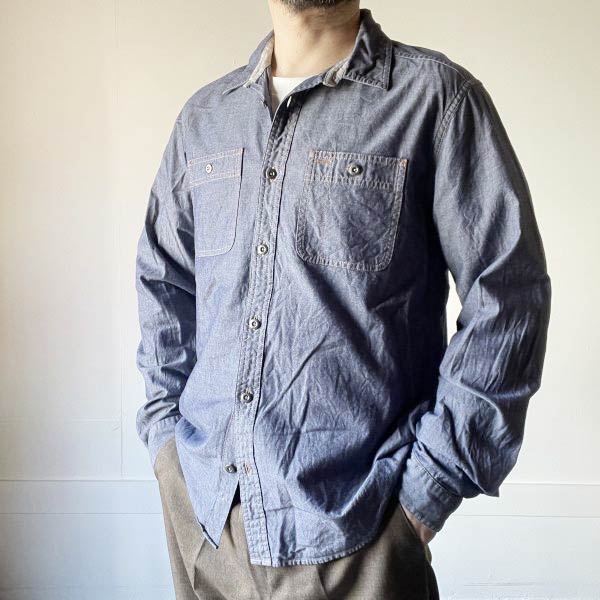 シャンブレー地にメタルボタンがビンテージを意識した気の利いたデザインです。