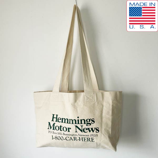 USA製 Hemmings Mortor News 両面プリント入り キャンバス トートバッグ 生成り系 アメリカ製 企業物 アドバタイジング D153