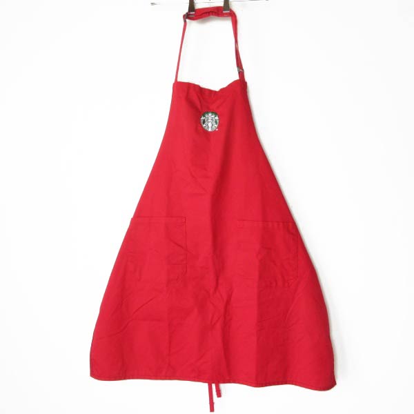 美品 STARBUCKS COFFEE スターバックス レッド エプロン 赤系 スタバ ホリデーシーズン アメリカのクルー使用品 D153