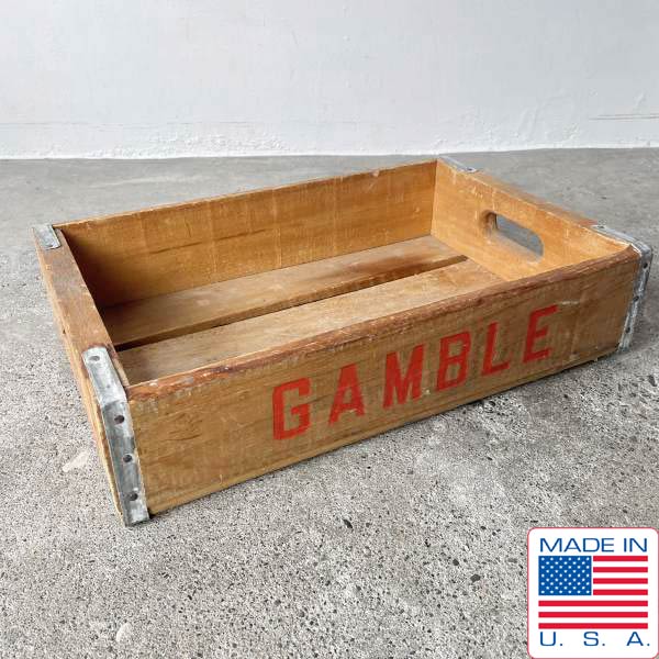 ビンテージ USA製 1978年製 GAMBLE 木製 ウッドボックス 木箱 70s アンティーク ディスプレイ インテリア 店舗什器 D128