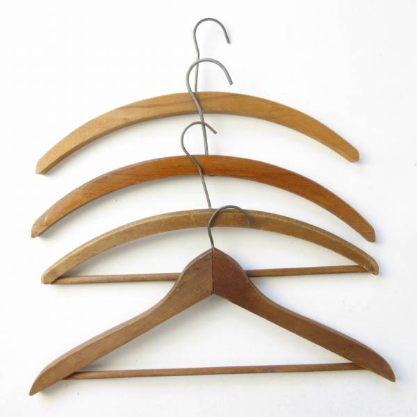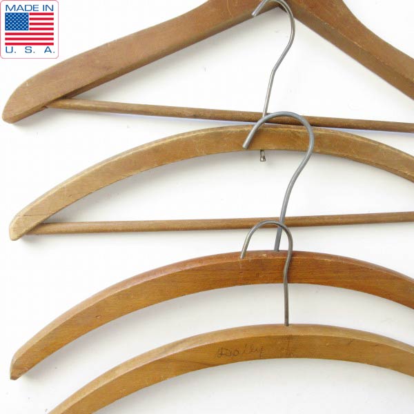 アメリカのビンテージ ウッドハンガー4本セットになります。
