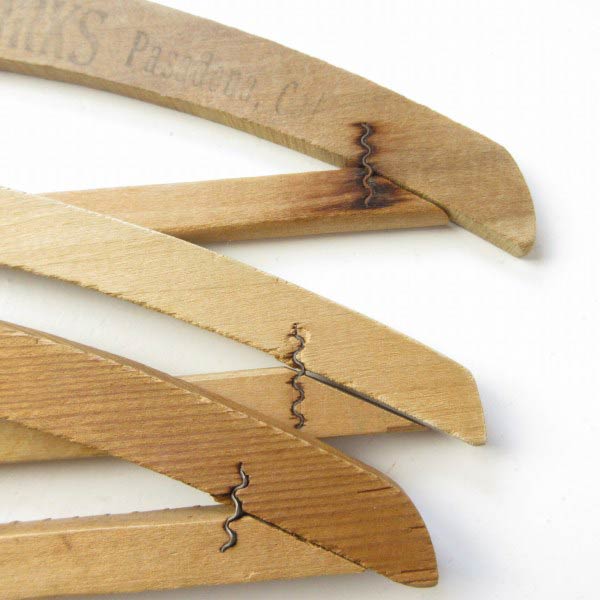 木目が出ている個体がありますが、木製ハンガーでもはっきりと木目が出ている物は珍しくデザイン性も高い為、近年評価が高まっているアイテムです。